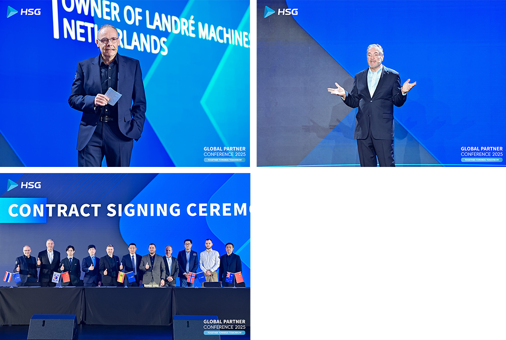 在年度新品發(fā)布后的簽約儀式上,來自不同國(guó)家和地區(qū)的代理商與宏山激光正式簽署合作協(xié)議,表達(dá)了對(duì)新品銷售以及未來合作的堅(jiān)定信心,現(xiàn)場(chǎng)嘉賓共同見證了這一重要時(shí)刻。宏山激光的成功離不開全球代理商的支持與信任。會(huì)上,來自荷蘭、美國(guó)的代理商代表分別回顧了與宏山激光的合作歷程,并一致肯定了宏山激光產(chǎn)品在技術(shù)創(chuàng)新、穩(wěn)定性、精準(zhǔn)切割精度和高效性能方面的卓越表現(xiàn)。