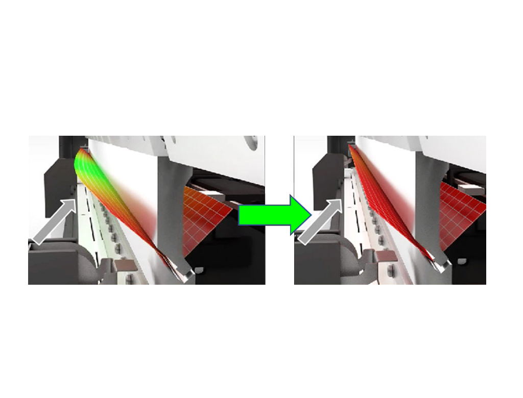 隨著折彎工件的長度.板厚.角度不同,根據編制的加工程序自動計算補償量。